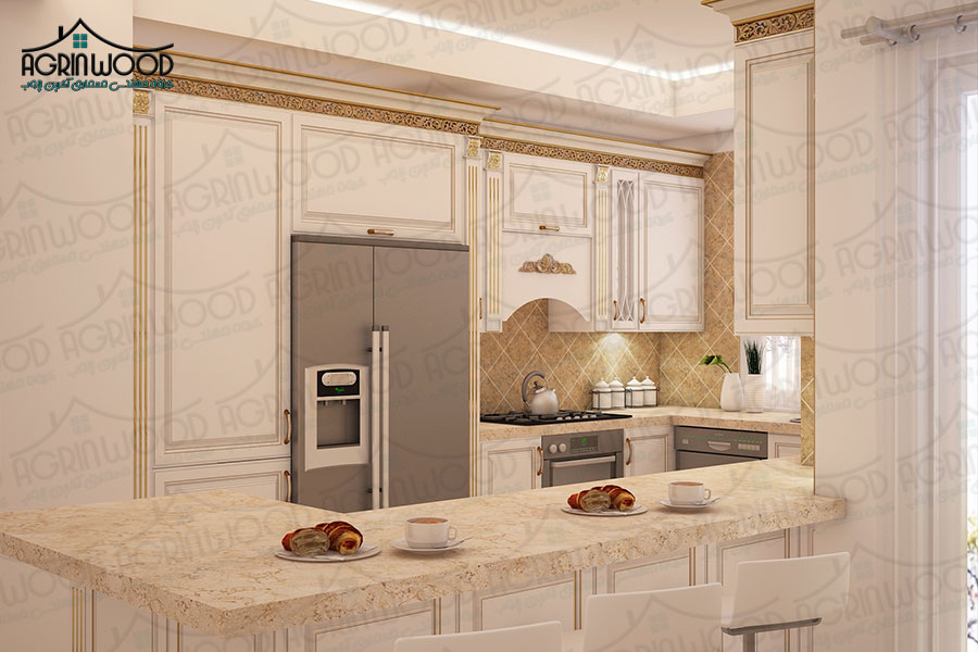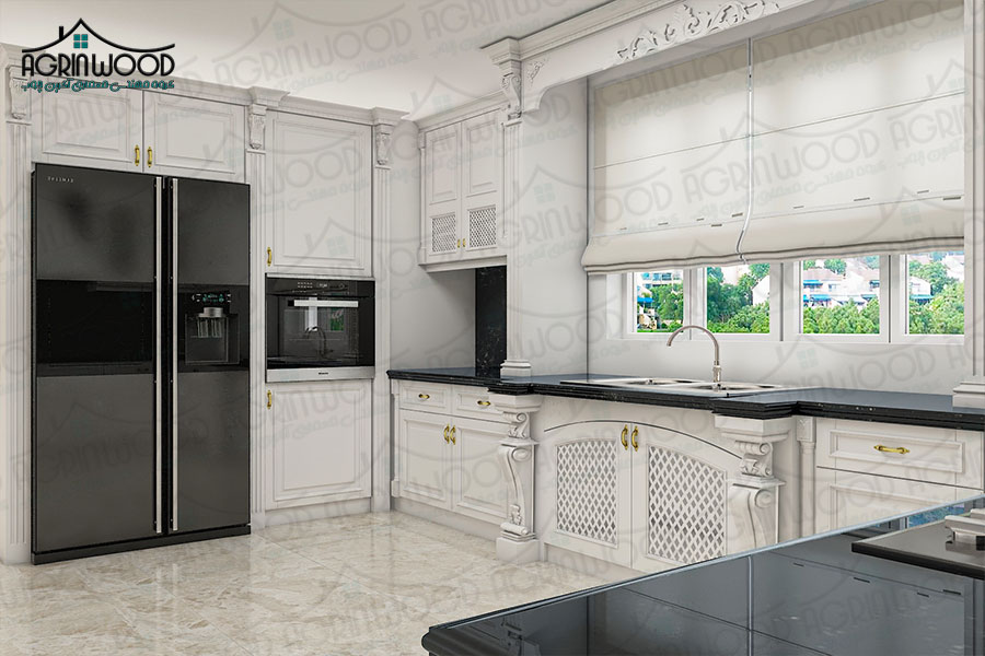 در آشپزخانه نئوکلاسیک تلفیقی از سبک کلاسیک و مدرن قابل مشاهده است.